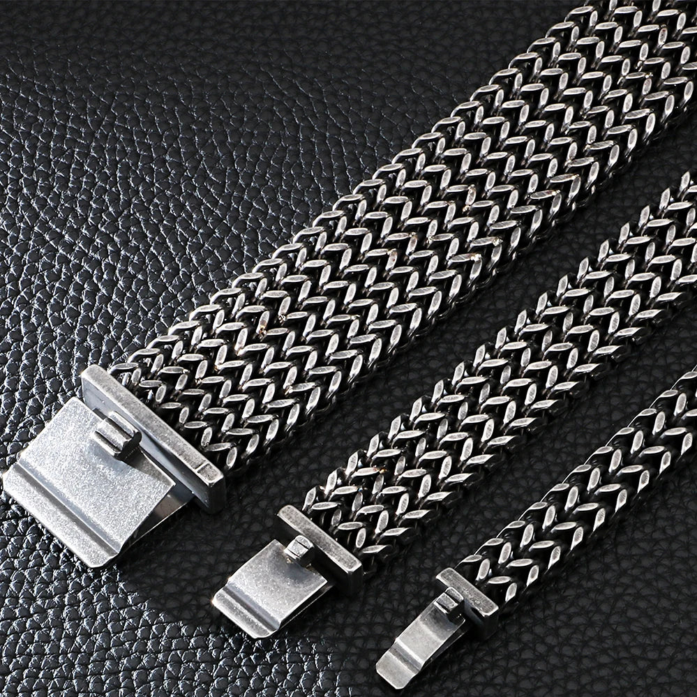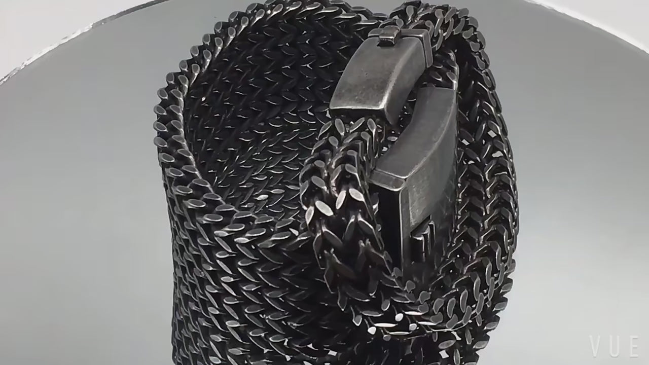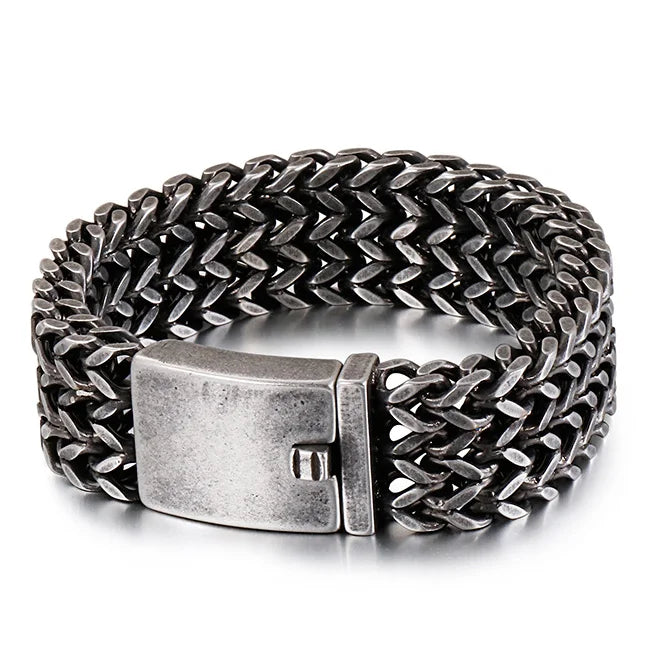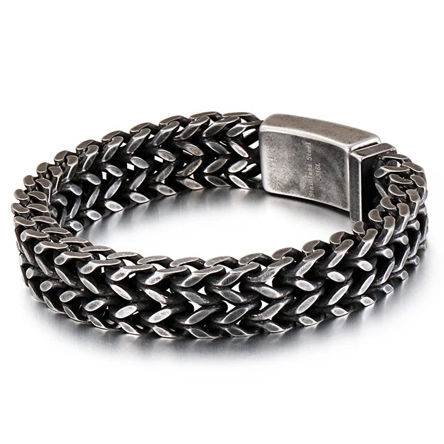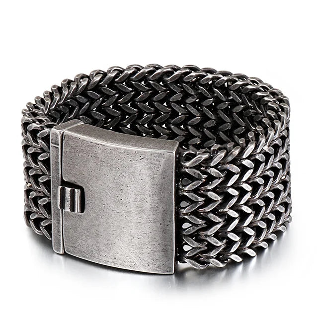 FZ Wide Black Stainless Steel Retro Massive Bracelet