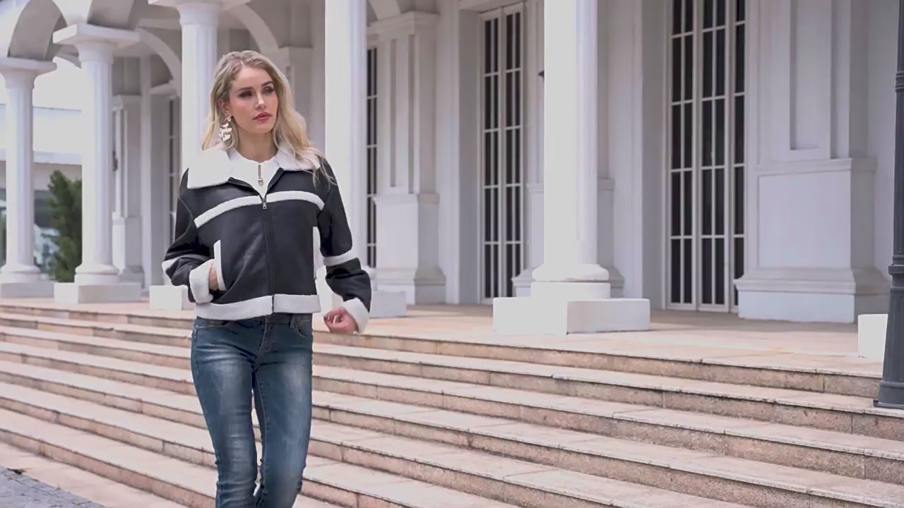 FZ Women Fashionable Warm Fleece Leather Jacket