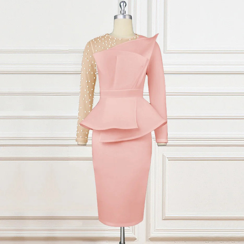 FZ Women's Beaded Sheath Package Hips Back Split Mid Calf African Dress