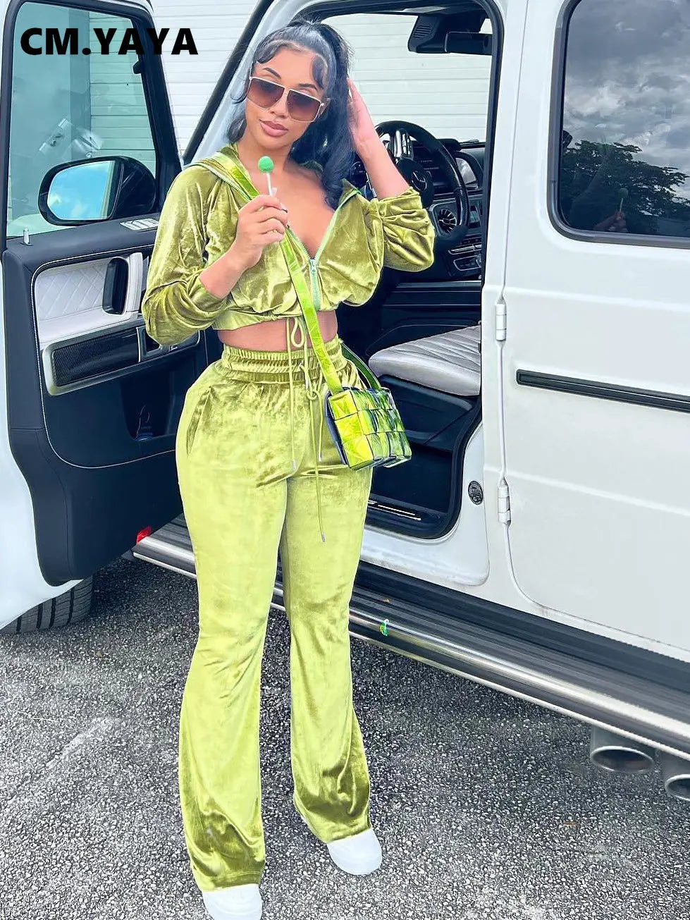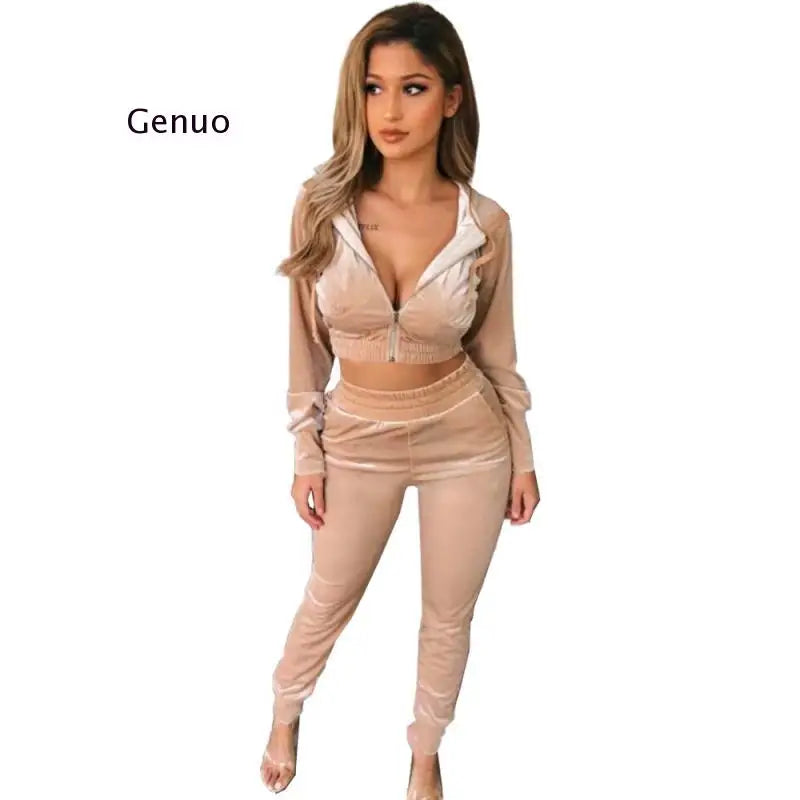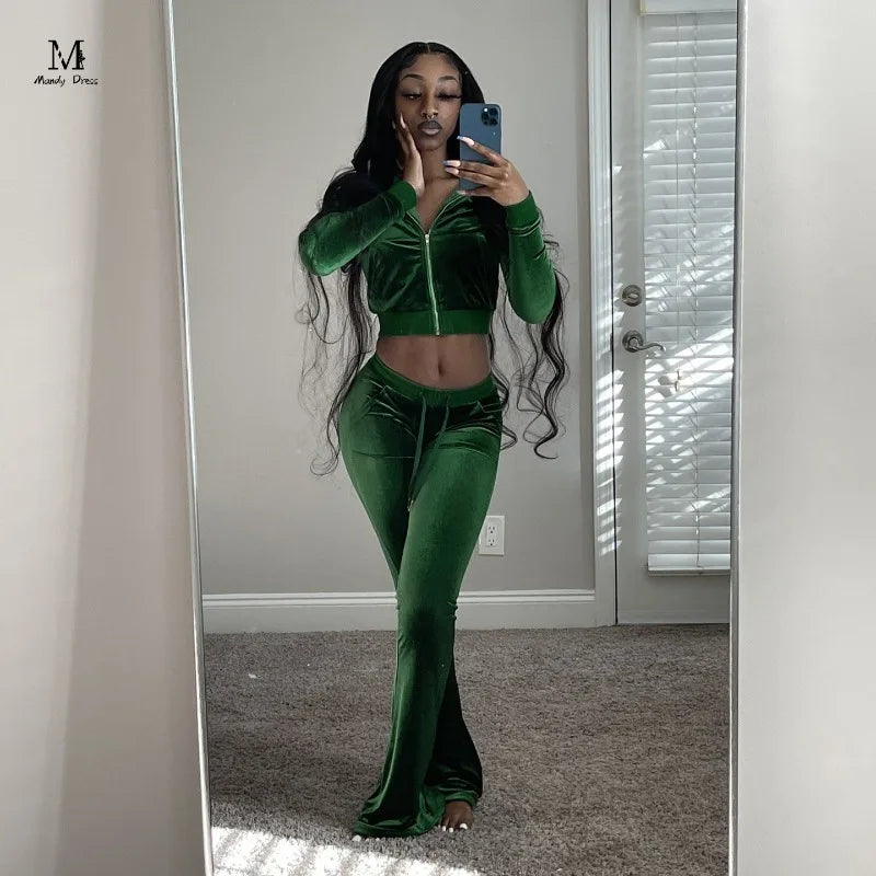 With its warm velvet material, of this pants suit you can stay cozy and trendy during colder months. The two-piece set is versatile and adds a touch of sexiness and cuteness to your wardrobe.
