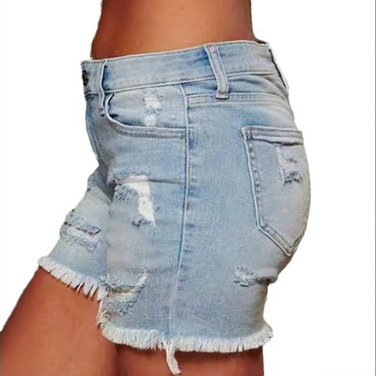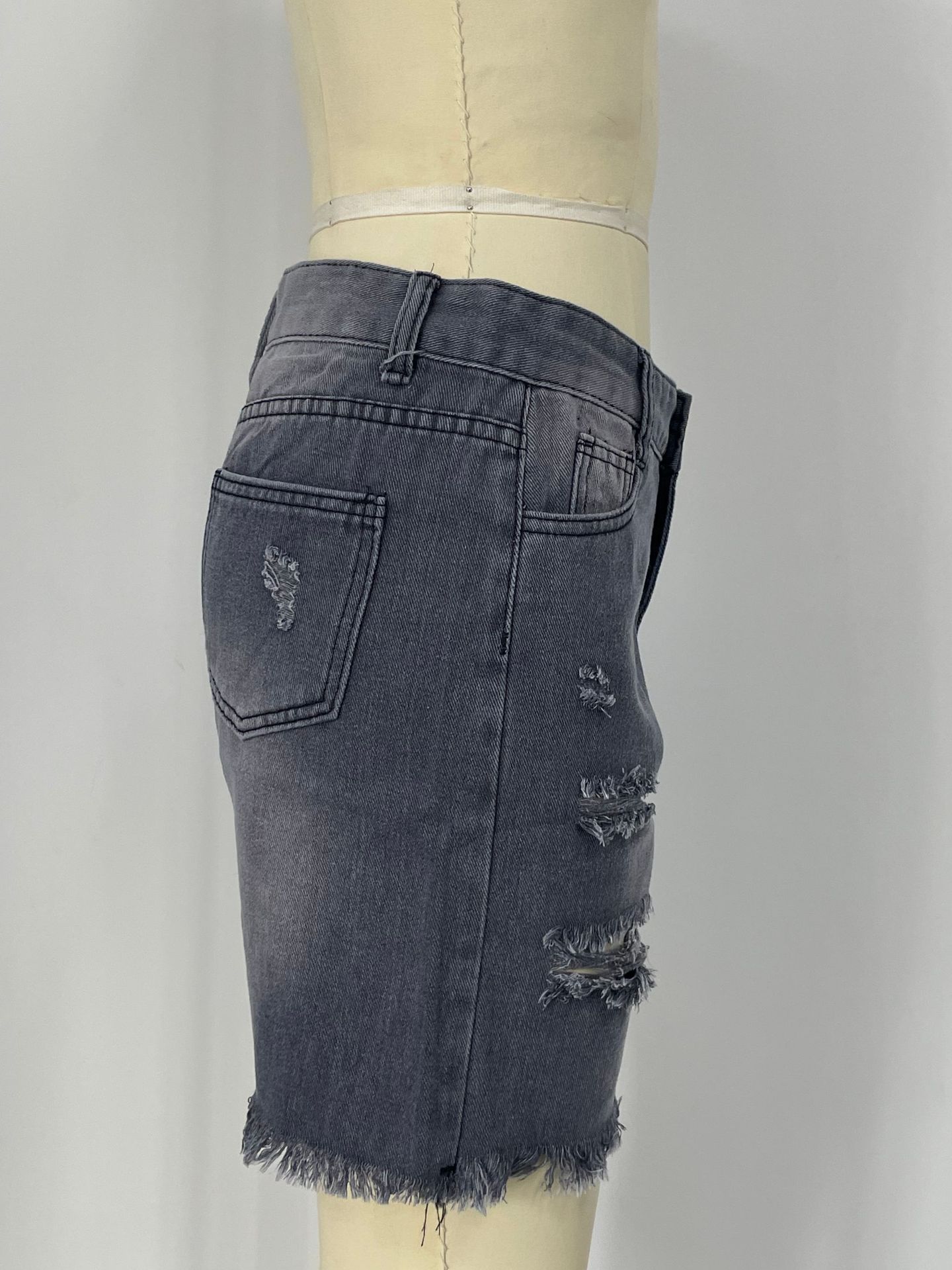 Crafted from premium cotton material, these denim shorts features a regular rise and strategically placed rips that showcase skin while maintaining an air of sophistication. The slimming cut hugs your curves in all the right places, while functional pockets and a secure zipper keep you comfortable and confident. Perfect for warm-weather styling—pair with a fitted tee, crop top, or flowing blouse for a look that's casually sexy and timelessly cool.