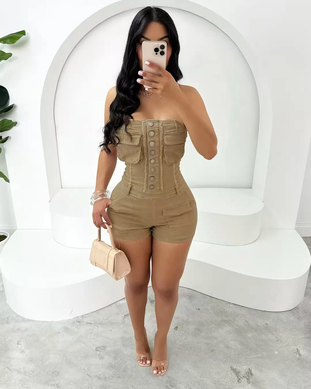 Fashion: Multi Pockets Jeans Stretch Playsuit