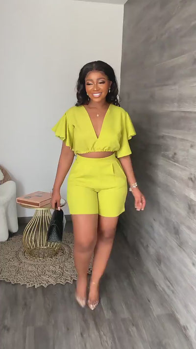 FZ Women's Ruffled Casual Two Piece Short Suit