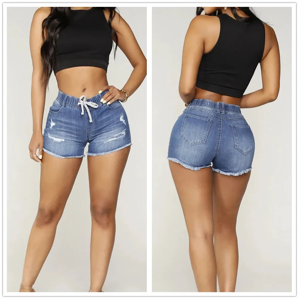 These elastic waist shorts will take your outfit to the next level with their sexy and cute design. The high waist and ripped details add a touch of sophistication, while the elastic waist provides a comfortable and slim fit. Perfect for any occasion.