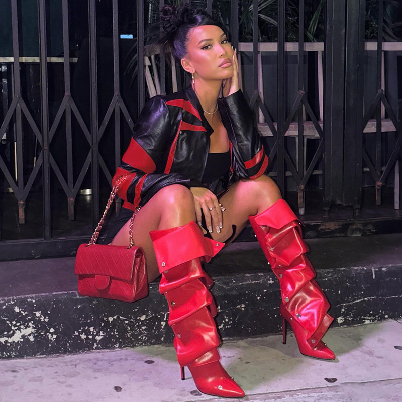 Elevate your wardrobe with this striking leather zipper jacket, engineered for a refined silhouette.