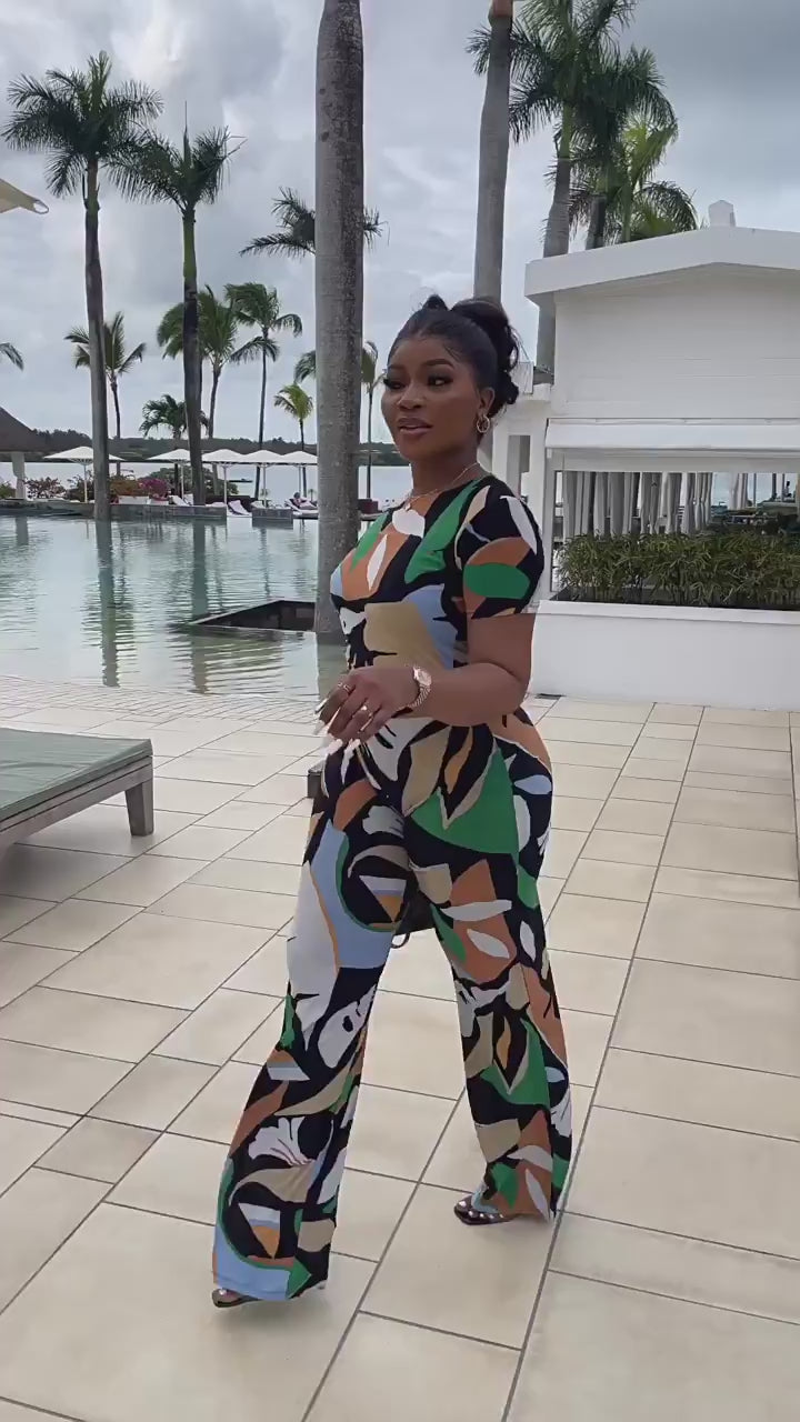 FZ Women's Printed Slim Fit High Waist Pants Set