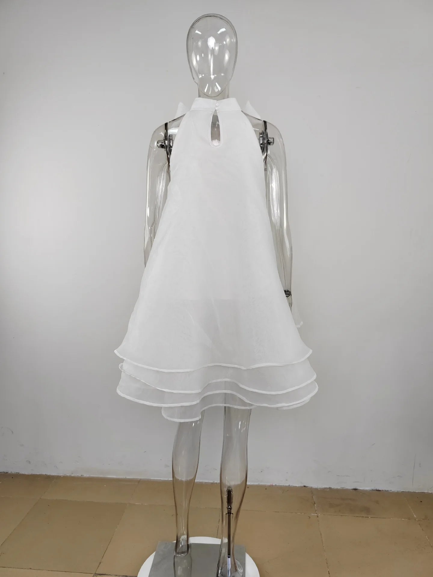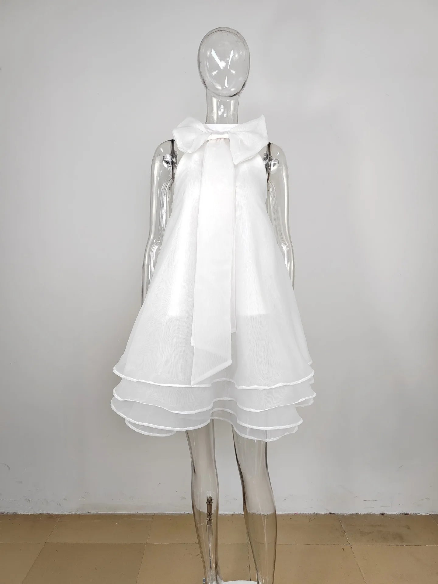FZ Women's Cute Bow Neck Layered Puffy A Line Sleeveless Dress