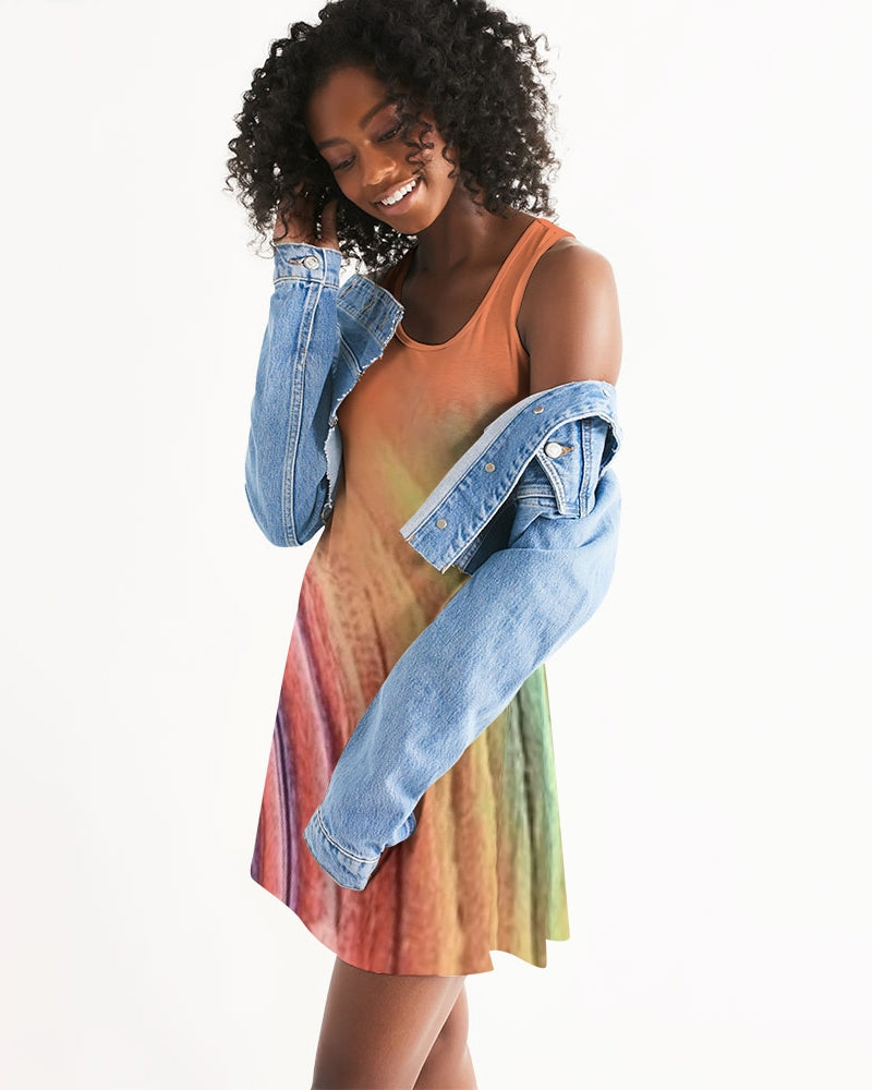 About The ArtABSTRACT ZONE THEN ZONE COMES ALIVE Product DetailsGive your look a personalized touch with our Women's Racerback Dress, carefully crafted for your style and comfort. Its soft, lightweight fabric and pullover styling make for easy movement and a throw on-and-go favorite.