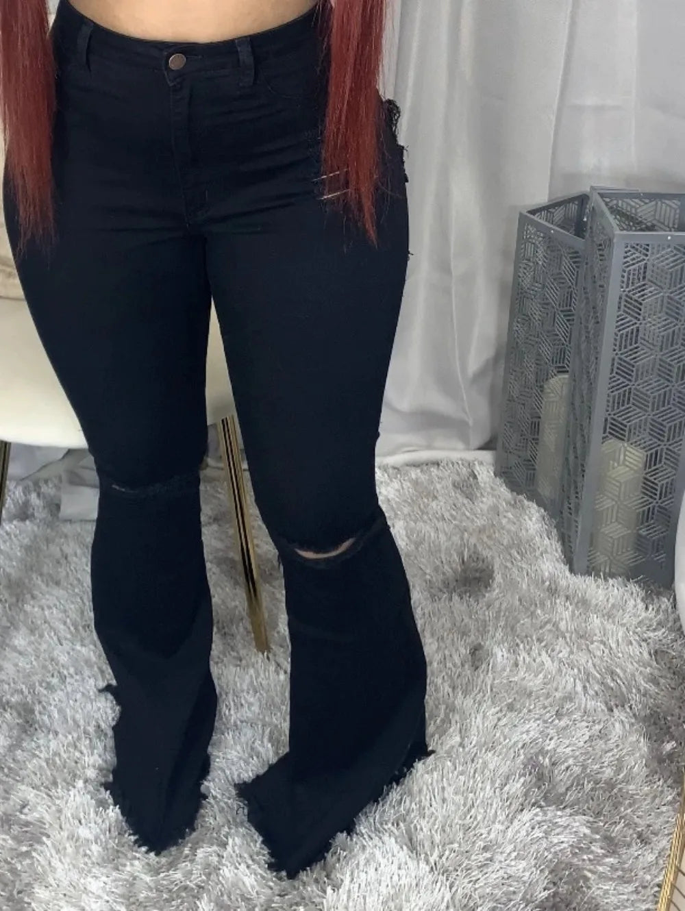 These FZ Women's Hole Hollow Out Flared High Waisted Button Skinny Denim Pants bring a cute and sexy touch to your wardrobe. With a flattering high waisted design and trendy button accents, these pants are perfect for any occasion. The unique hole hollow out detailing adds a touch of edginess to your look. Get ready to turn heads in these stylish and versatile denim pants.