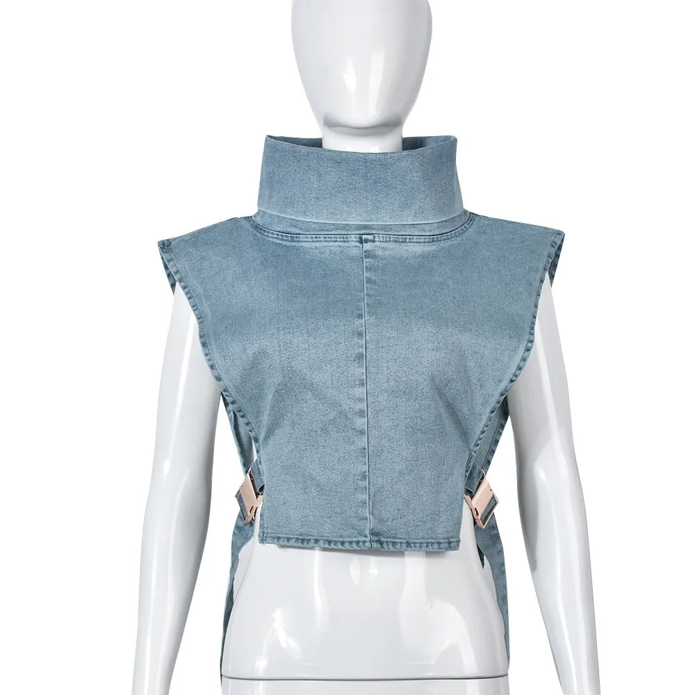 FZ Women's Y2K Streetwear Side Hollow Denim Crop Top