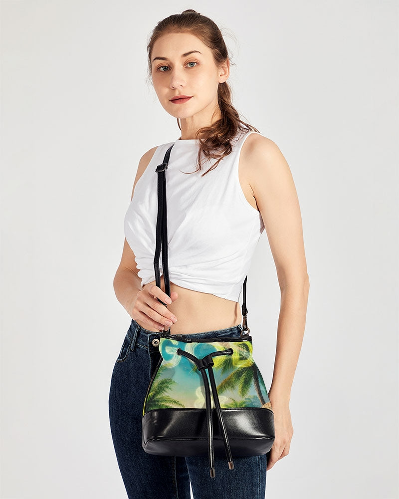 This FZ Good Road Mini Drawstring Bucket Bag offers a cute and stylish addition to your wardrobe.Made from high-quality materials, this bucket bag is both functional and fashionable. With its unique design and vibrant print, it is sure to make a statement wherever you go. Elevate your style with this must-have accessory. About The ArtFZ GOOD ROAD THE ZONE IS SPIRITUAL Product DetailsOur Mini Drawstring Bucket Bag is a must-have for fashion-forward individuals. Its stylish canvas material paired with faux leather accents compliments various outfits, making it perfect for any occasion. Whether you're heading to a summer picnic, a gallery opening, or a weekend brunch with friends, this bag combines fashion and function effortlessly, keeping your essentials close at hand.
