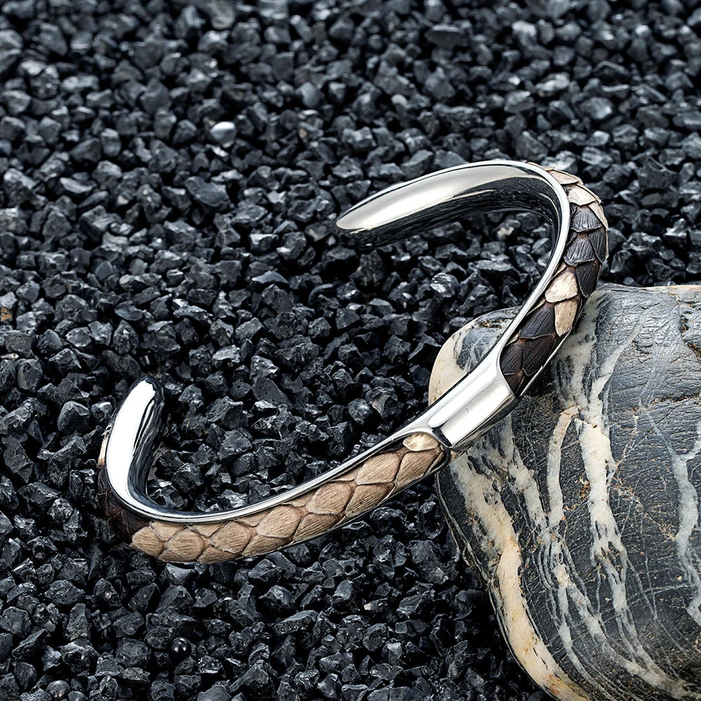 This FZ Stainless Steel Blue Python Skin Cuff Bracelet is a stylish and cute accessory that adds a touch of sophistication to any outfit.