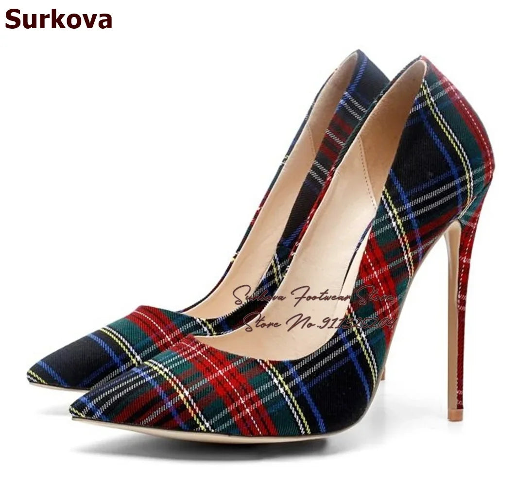 FZ Women's Checkered Cloth Shallow Pointed Toe High Heel Shoes