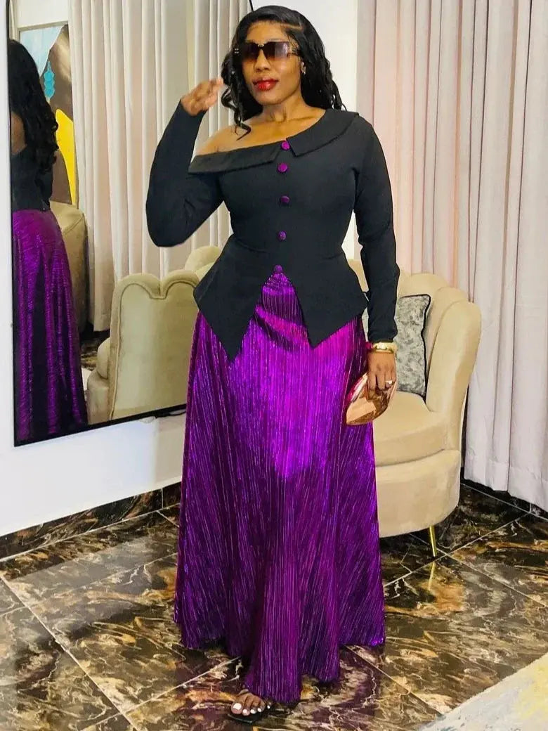 Elevate your style with the FZ Women's Off Shoulder Loose Long Two-piece Skirt Suit.