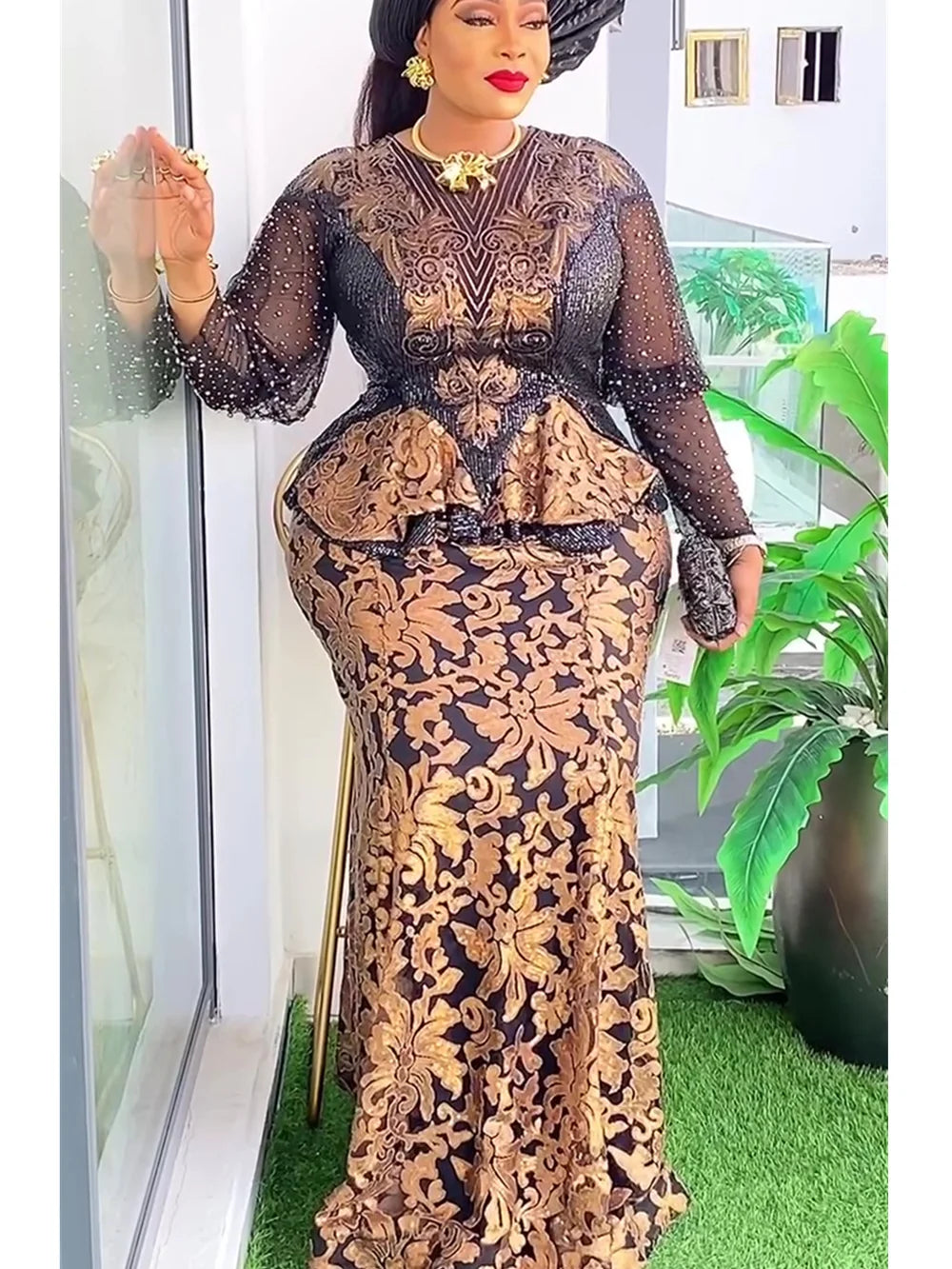 This elegant and stylish FZ Women's Plus Size African Fashion Sequin Maxi Dress is perfect for any occasion.