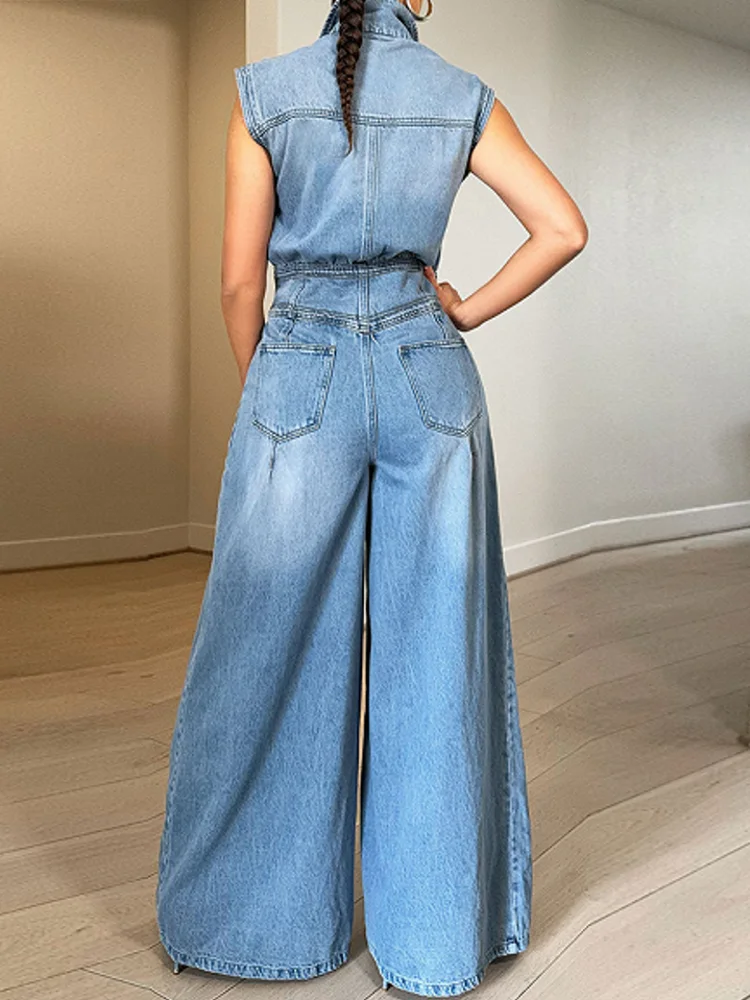 FZ Women's Vintage LooseWide Leg Denim Jumpsuit