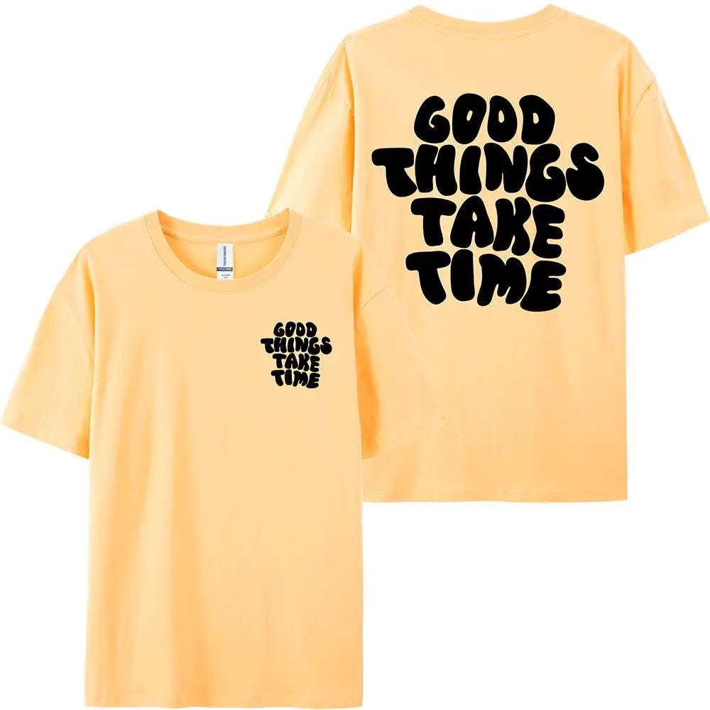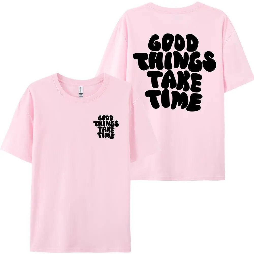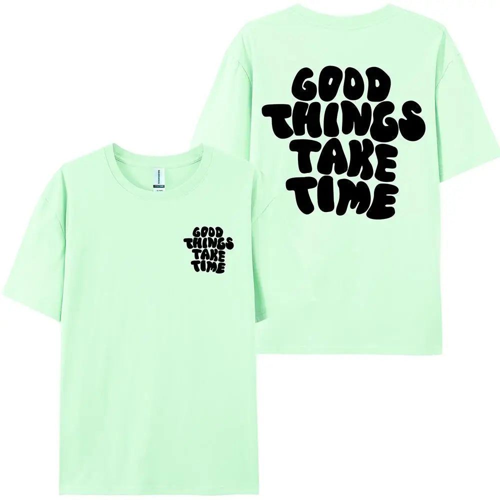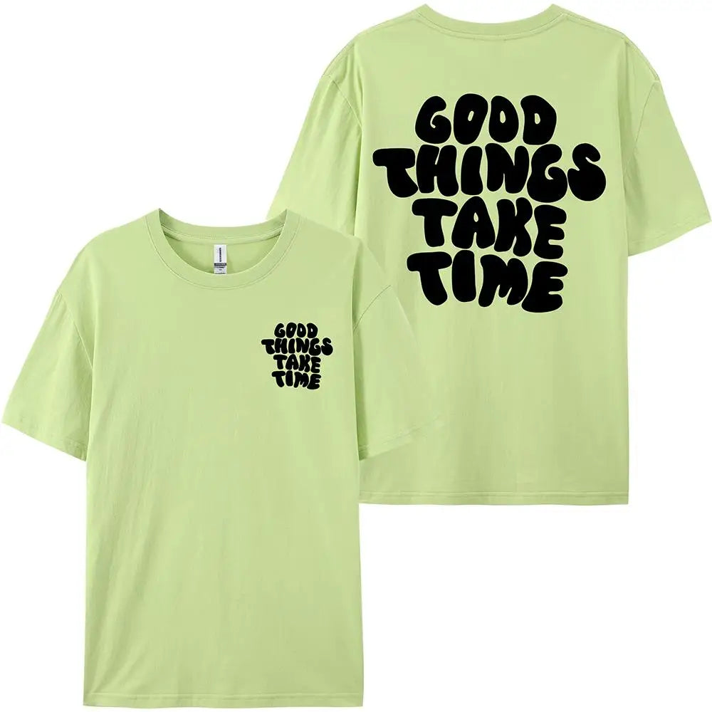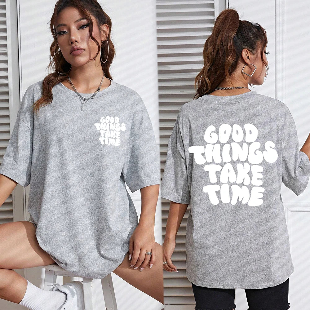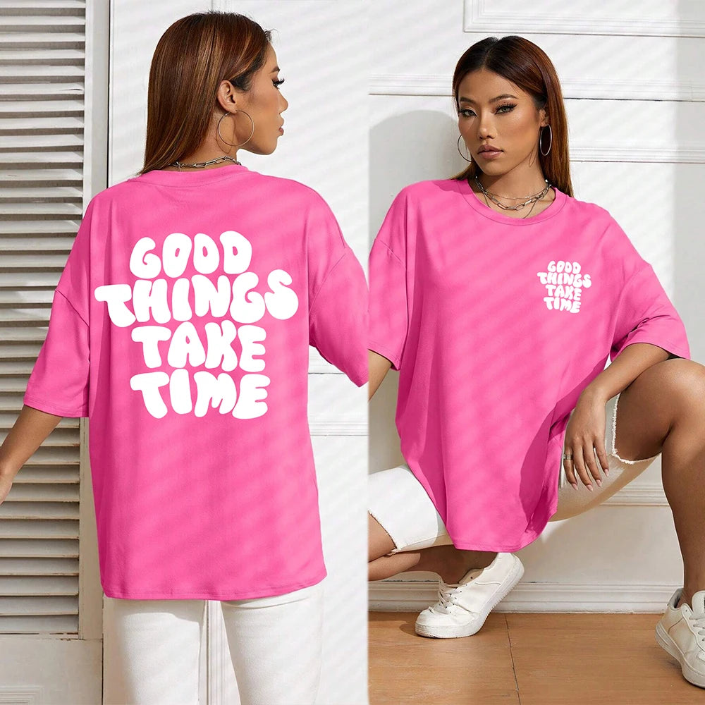 FZ Women's Good Things Take Time Art Letter Oversized Tee