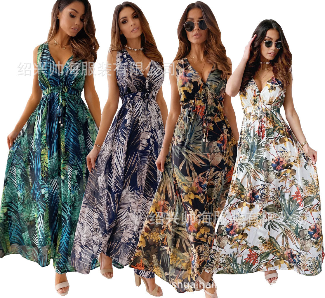 Floral Print Wrapped Short Ruffle Sleeve Maxi Dress. Sleeveless and V neck makes for a great outing in the summer.