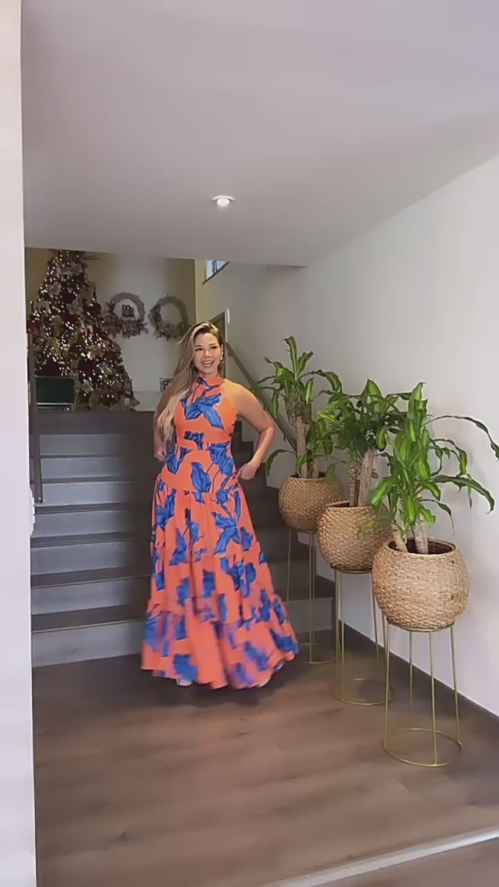 FZ Women's Printed Elegant Halter Large Swing Sun Dress