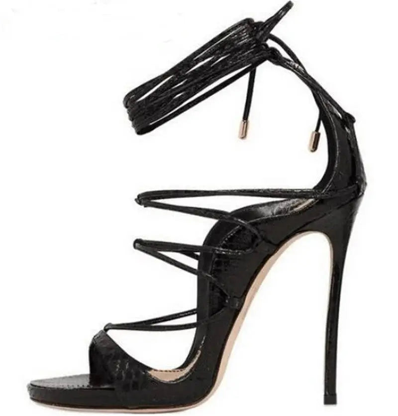FZ Women's Sexy Cut-outs Cross-tied Peep Toe Thin High Heels Gladiator Shoes