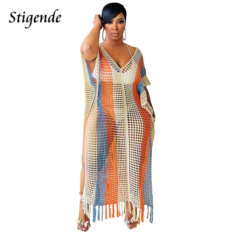FZ Women's Knit Sexy Side Split Hollow Out Swimsuit Cover Up