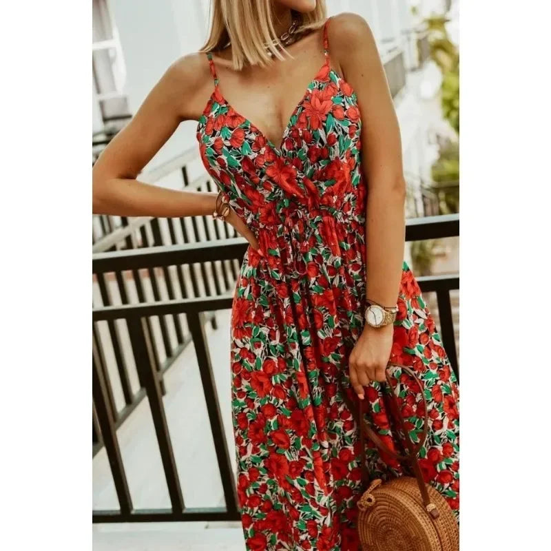 This FZ Women's Camisole Bohemian Tropical Charm Sun Dress boasts a stylish and fashionable design, perfect for any warm weather occasion.