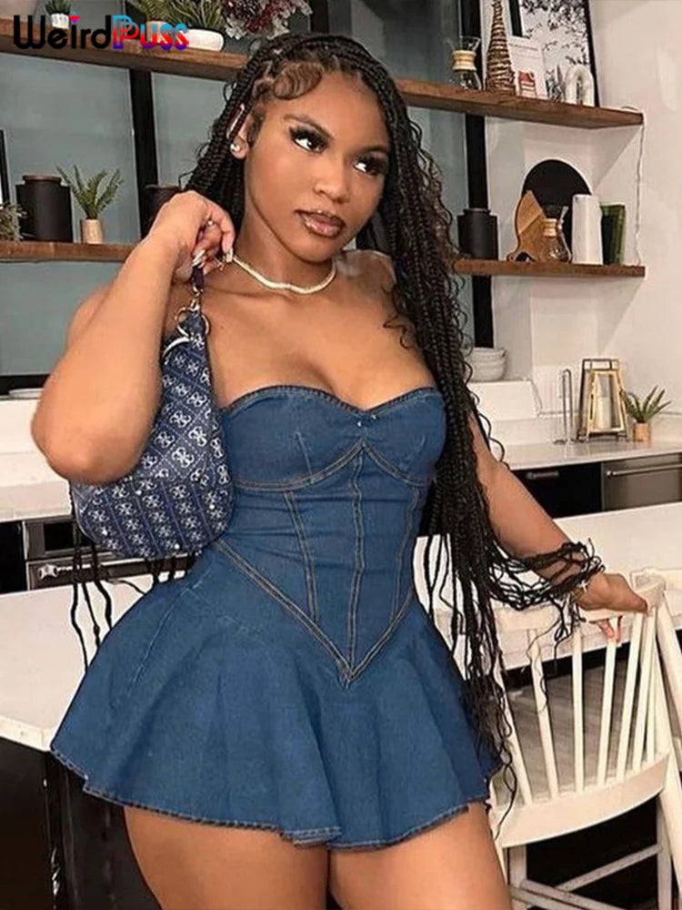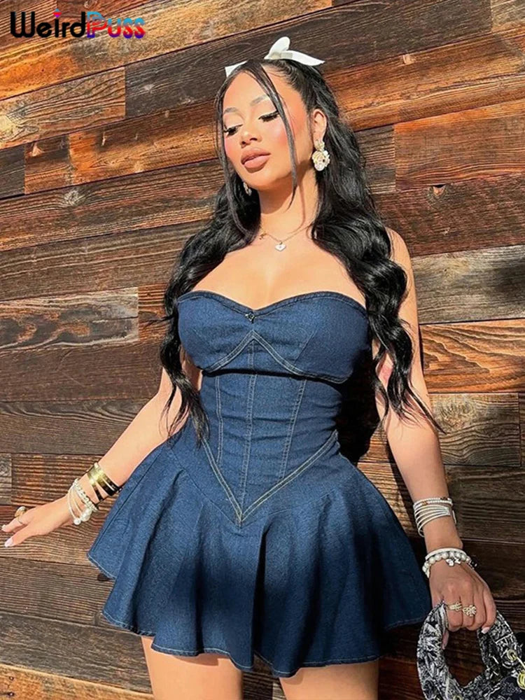 This FZ Women's Strapless Sexy Skinny Hipster Imitation Denim Dress is a must-have for any fashion-forward individual.