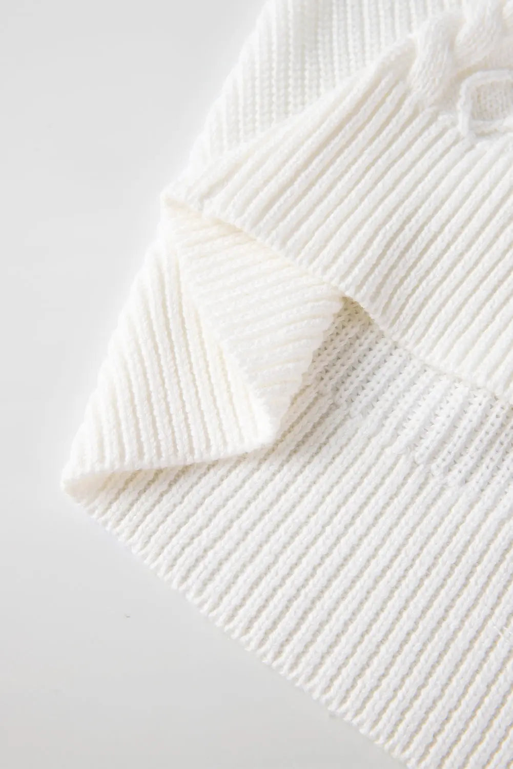 FZ Women's White Turtle Neck Cable Knit Ruffled Sweater Top